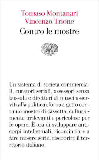 Avec Contro le mostre, les historiens de l’art italiens Tomaso Montanari et Vincenzo Trione dressent un portrait sans concession du marché de l’art contemporain et de l’organisation des expositions aujourd’hui. Si le propos se fonde sur l’Italie, la réflexion critique va bien au-delà des frontières alpines. En ce sens, l’ouvrage soulève des questions essentielles pour quiconque s’intéresse à l’art contemporain et à la muséographie.
